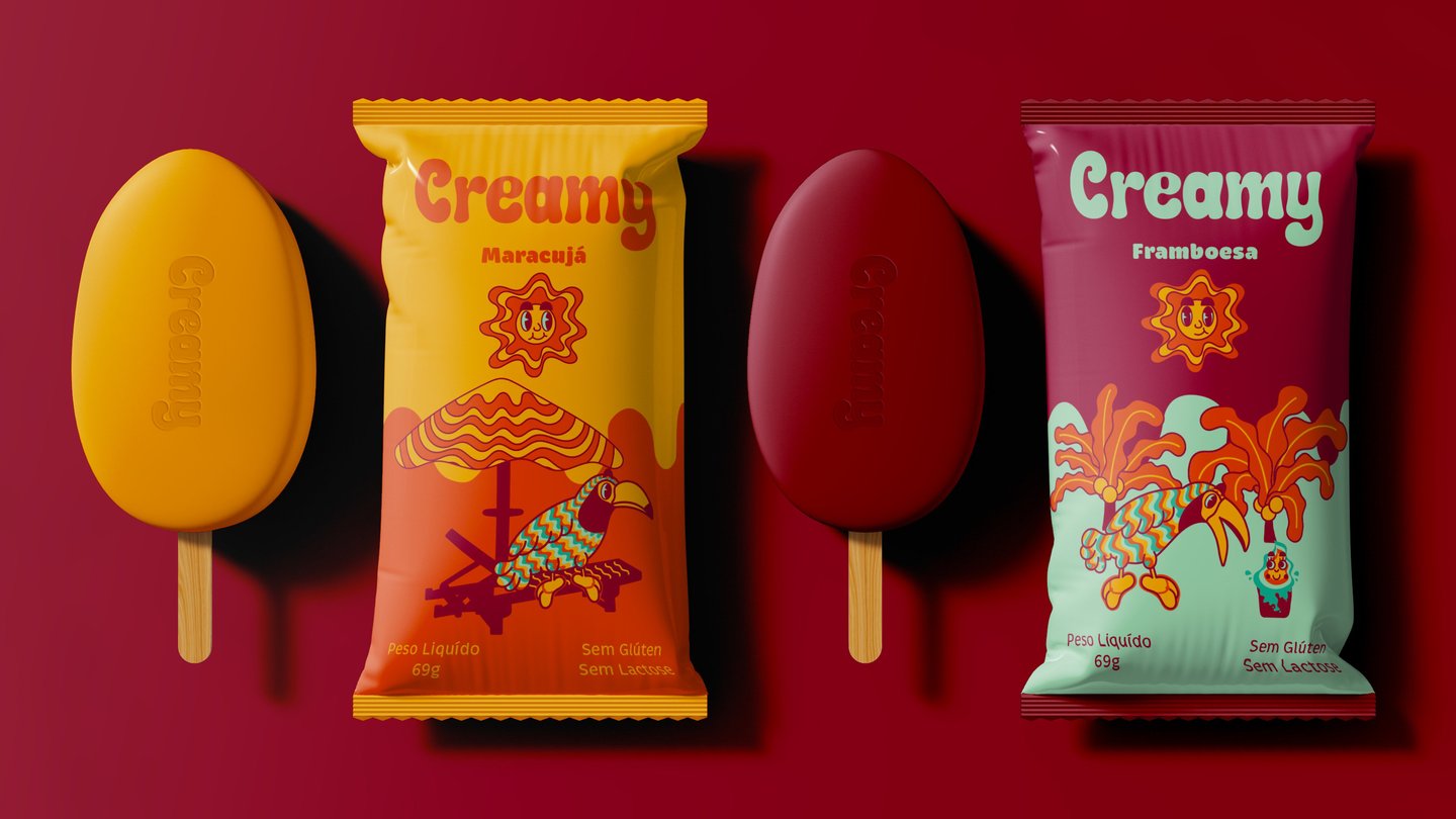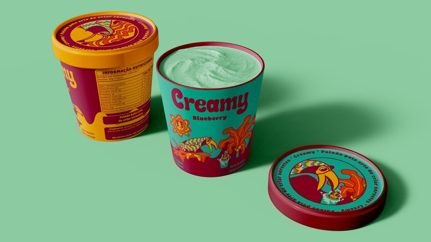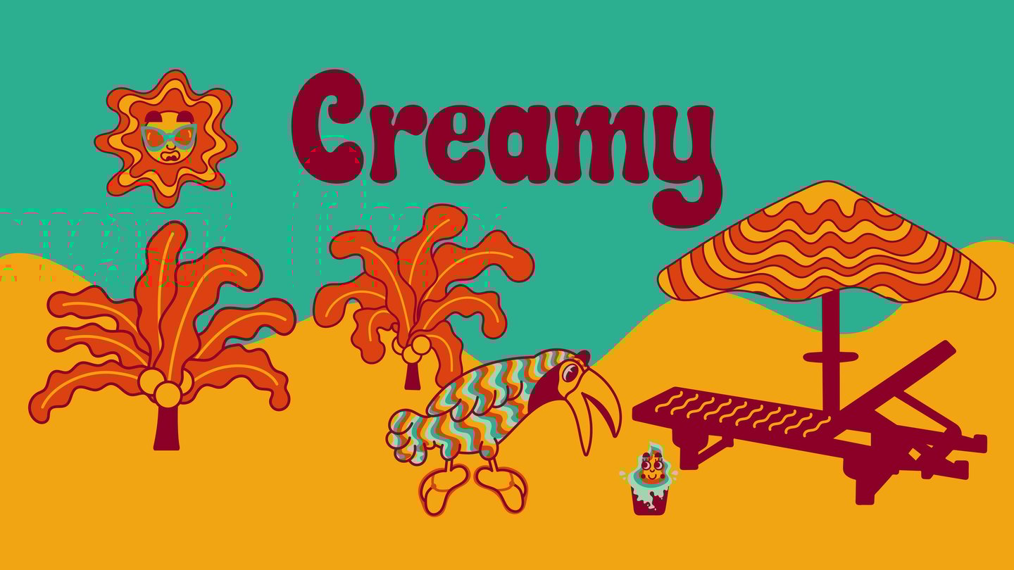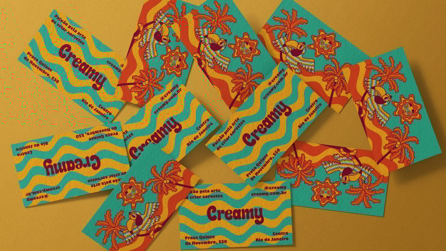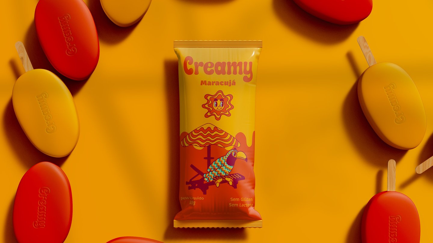 Inspired by summer in Rio, Creamy's visual identity uses vibrant colors and fluid shapes to reflect the joy and freshness of the brand.