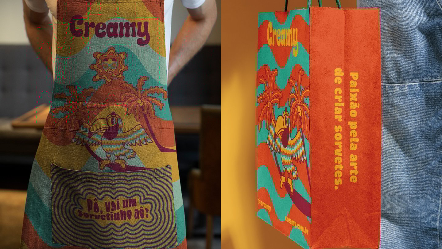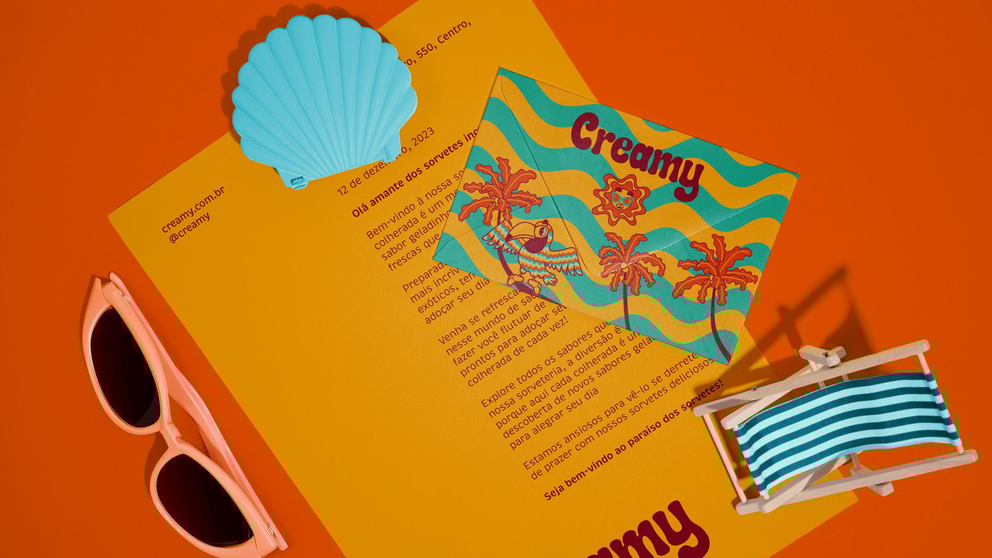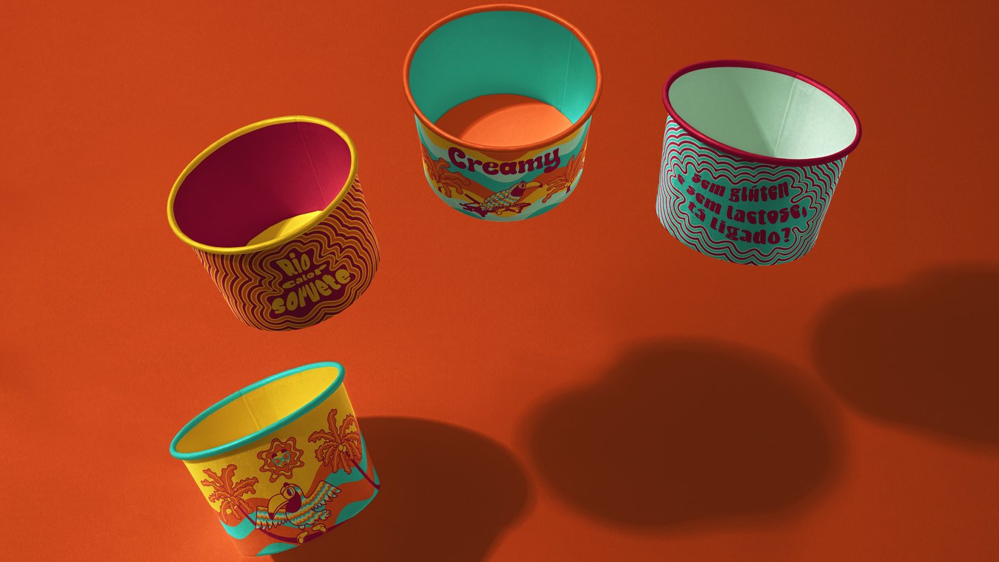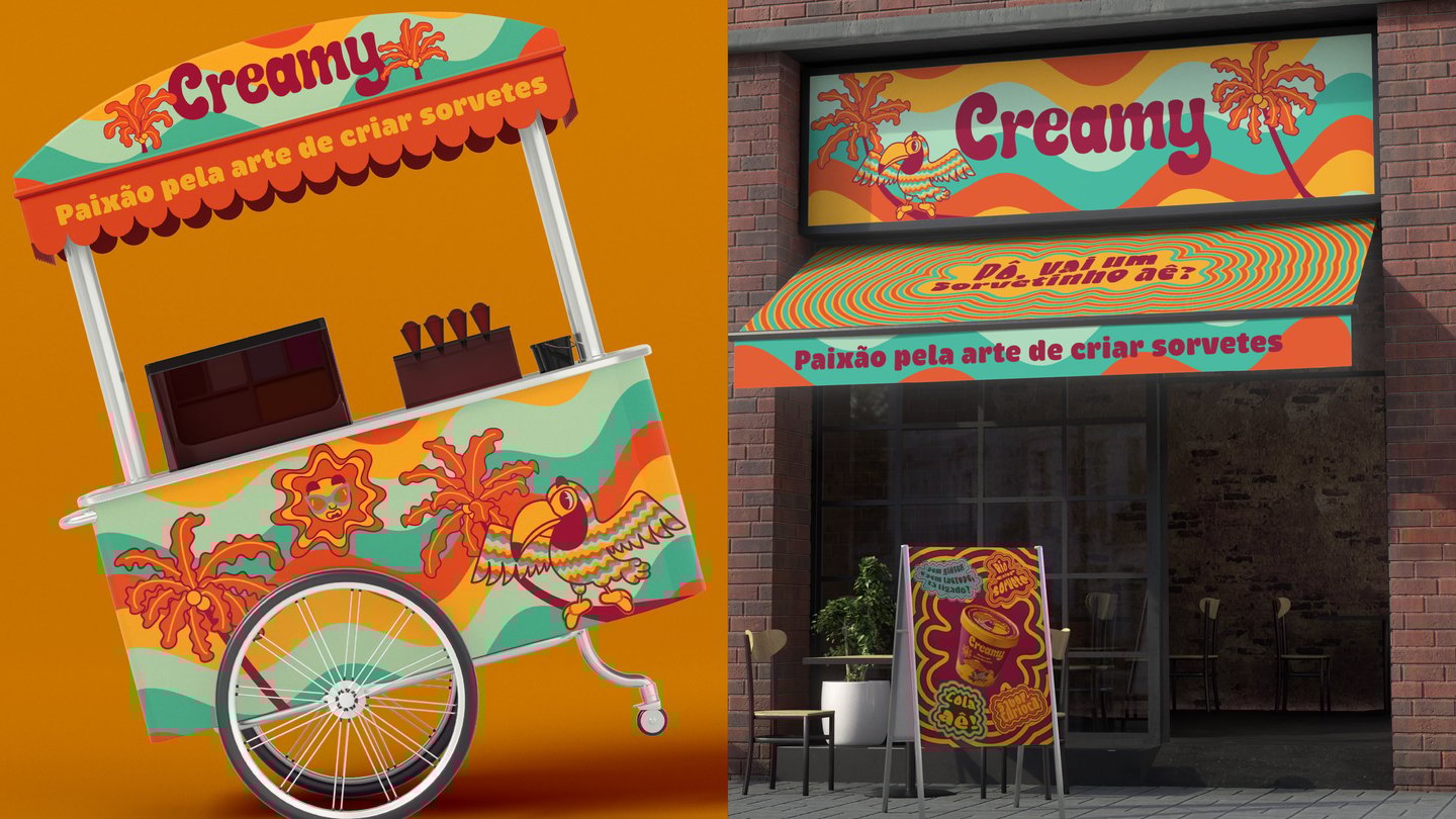 Inspired by summer in Rio, Creamy's visual identity uses vibrant colors and fluid shapes to reflect the joy and freshness of the brand.
