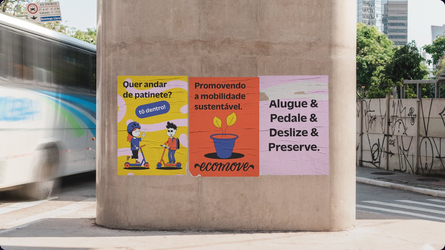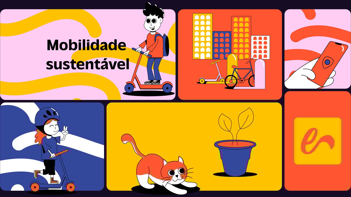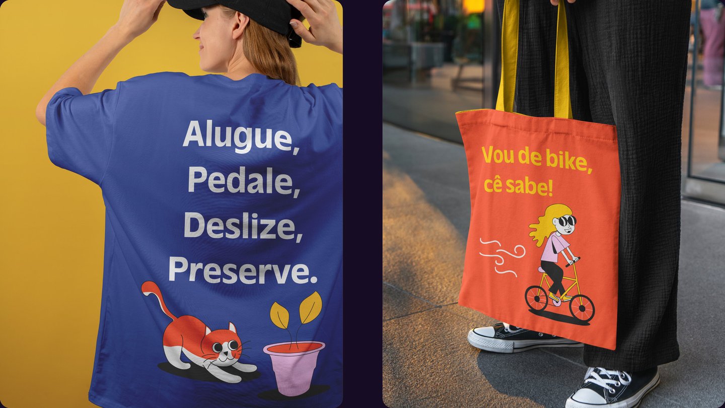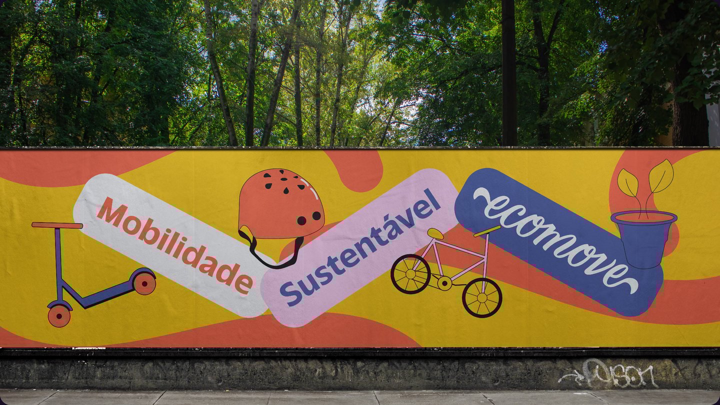 The playful illustrations and relaxed style reinforce the connection with the young public, bringing lightness and fun to the concept of concept of sustainable mobility.