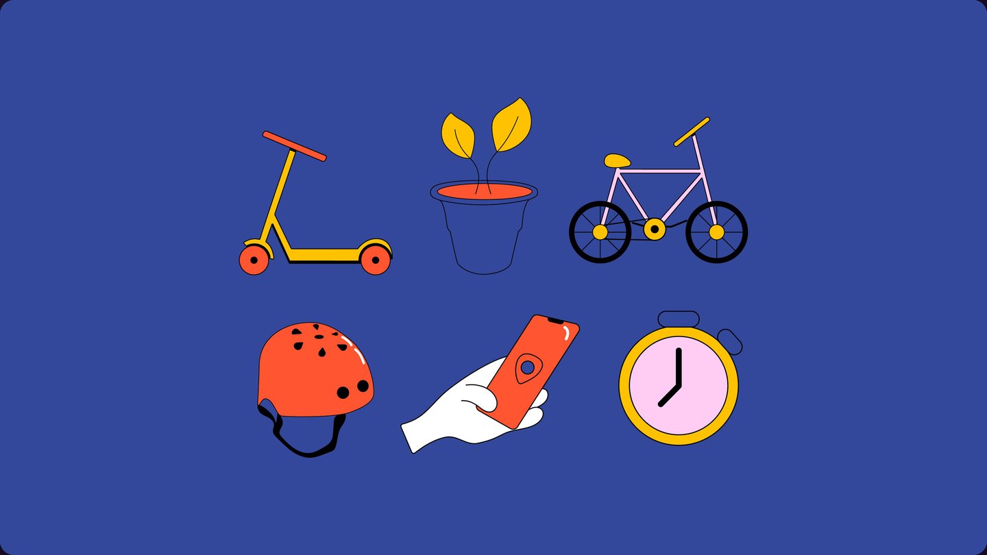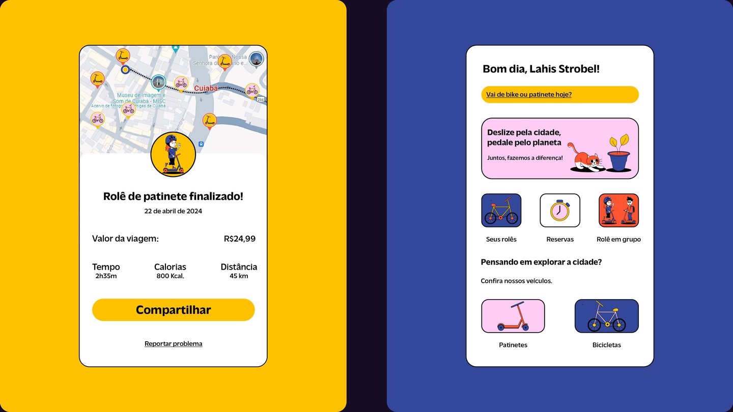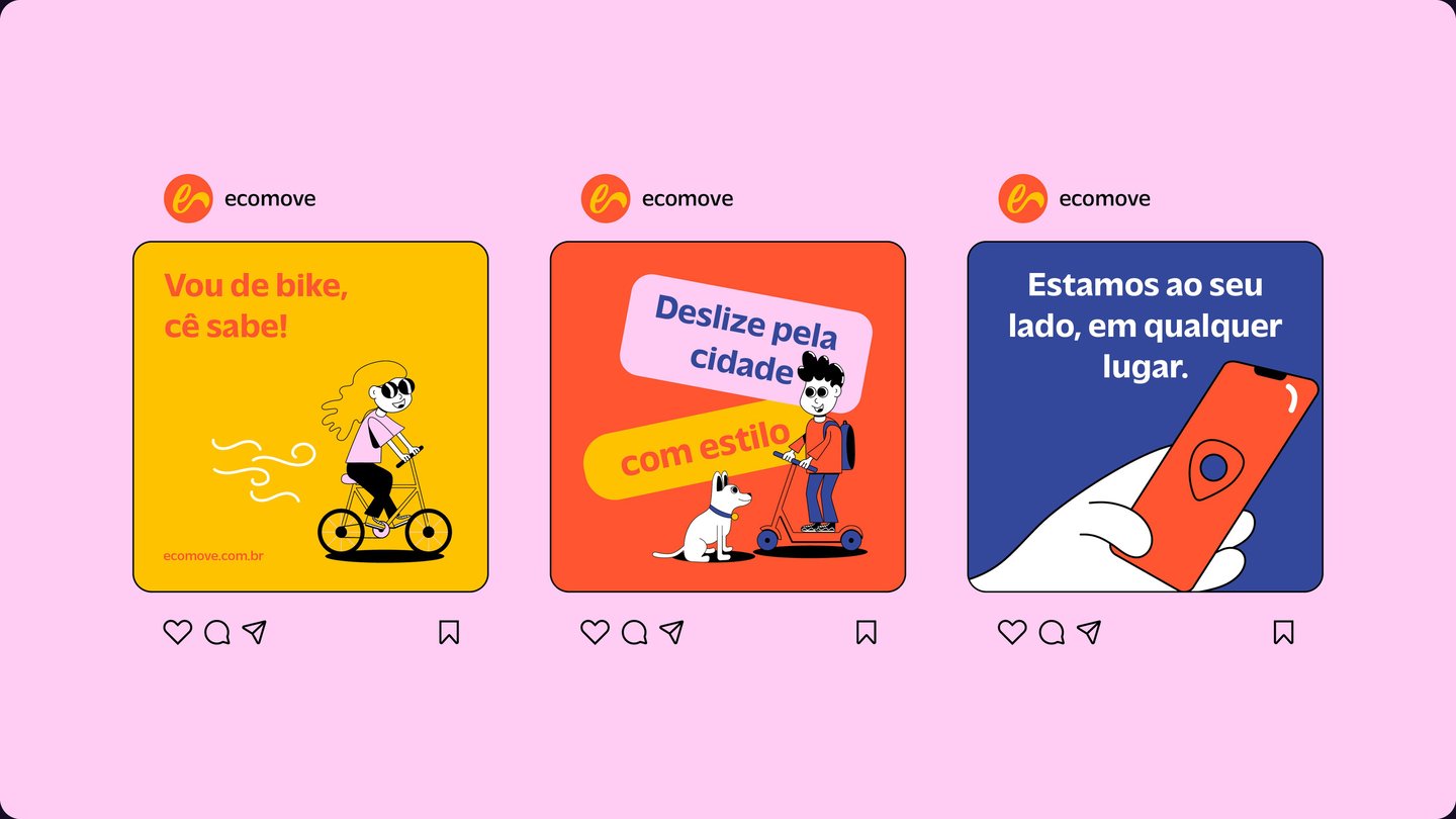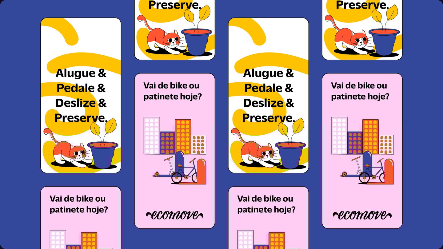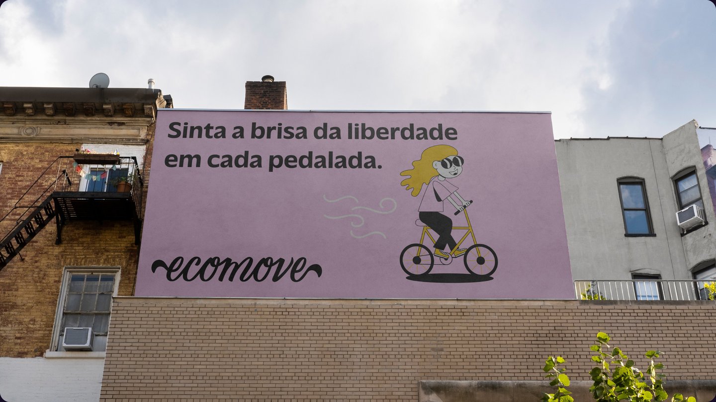 The playful illustrations and relaxed style reinforce the connection with the young public, bringing lightness and fun to the concept of concept of sustainable mobility.