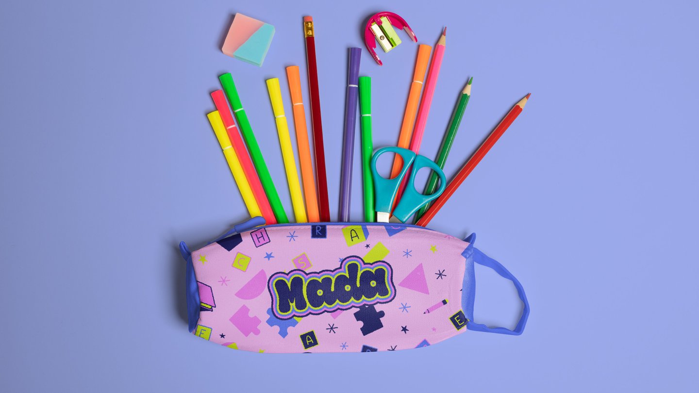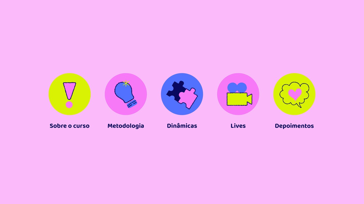 Elementos gráficos e ilustrações com efeito de giz de cera evocam rabiscos infantis, reforçando criatividade